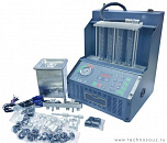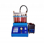 Стенд для проверки и промывки 6 инжекторов в ультразвуковой ванне. Автоматический слив тестирующей жидкости. Работает от сжатого воздуха. Имитация работы форсунок происходит с помощью встроенного электронного блока управления форсунками. В комплект поставки входит ультразвуковая ванна объемом 2,0 литра с подогревом и мощностью генератора 60 ВТ.
