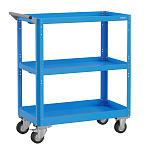 Корпус выполнен из листовой стали толщиной от 0,6 до 1,5мм., покрыт полимерной порошковой краской. Верхняя и средняя полка имеют высоту борта 40мм., нижняя полка имеет высоту борта 60мм. Общая равномерно-распределённая нагрузка на тележку - до 100кг. Размер 800х700х450мм.