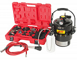 Приспособление для прокачки тормозов с пневматическим приводом. Емкость 5л. Подходит как для прокачки тормозной системы, так и для прокачки гидравлической системы привода сцепления. В комплекте специальных адаптеров - 13 шт.