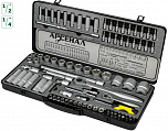 Набор инструментов 1/4" & 1/2" 6-гранный (в кейсе) 85 предметов. В наборе: головки торцевые 1/4", головки с насадкой HEX 1/4", головки с насадкой TORX 1/4", головки с шлицевой насадкой 1/4", головка с насадкой PH 1/4", насадки PZ 1/4", головки торцевые 1/2", свечная головка 1/2", насадка 5/16 HEX 1/2", насадки 5/16 TORX 1/2", насадки 5/16 PH 1/2" для ударной отвертки PH3, PH4, насадки 5/16 PZ 1/2", держатель бит: 1/2х5/16, трещотка 1/4 36 зубцов (резиновая ручка), удлинитель 1/4 50 и 100мм, кардан 1/4", вороток-отвертка 1/4", вороток 1/4" с плавающей головкой, гибкий вал 1/4", трещотка 1/2 36 зубцов, удлинитель 1/2" 125 и 250мм, кардан 1/2", переходник 3/8х1/2 с отверстием, ключи рожково-накидные.