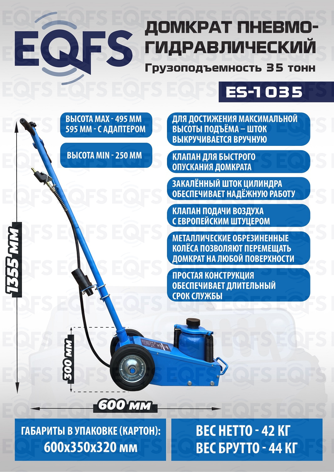 Технические особенности ES-1035 пневмогидравлический подкатной домкрат: