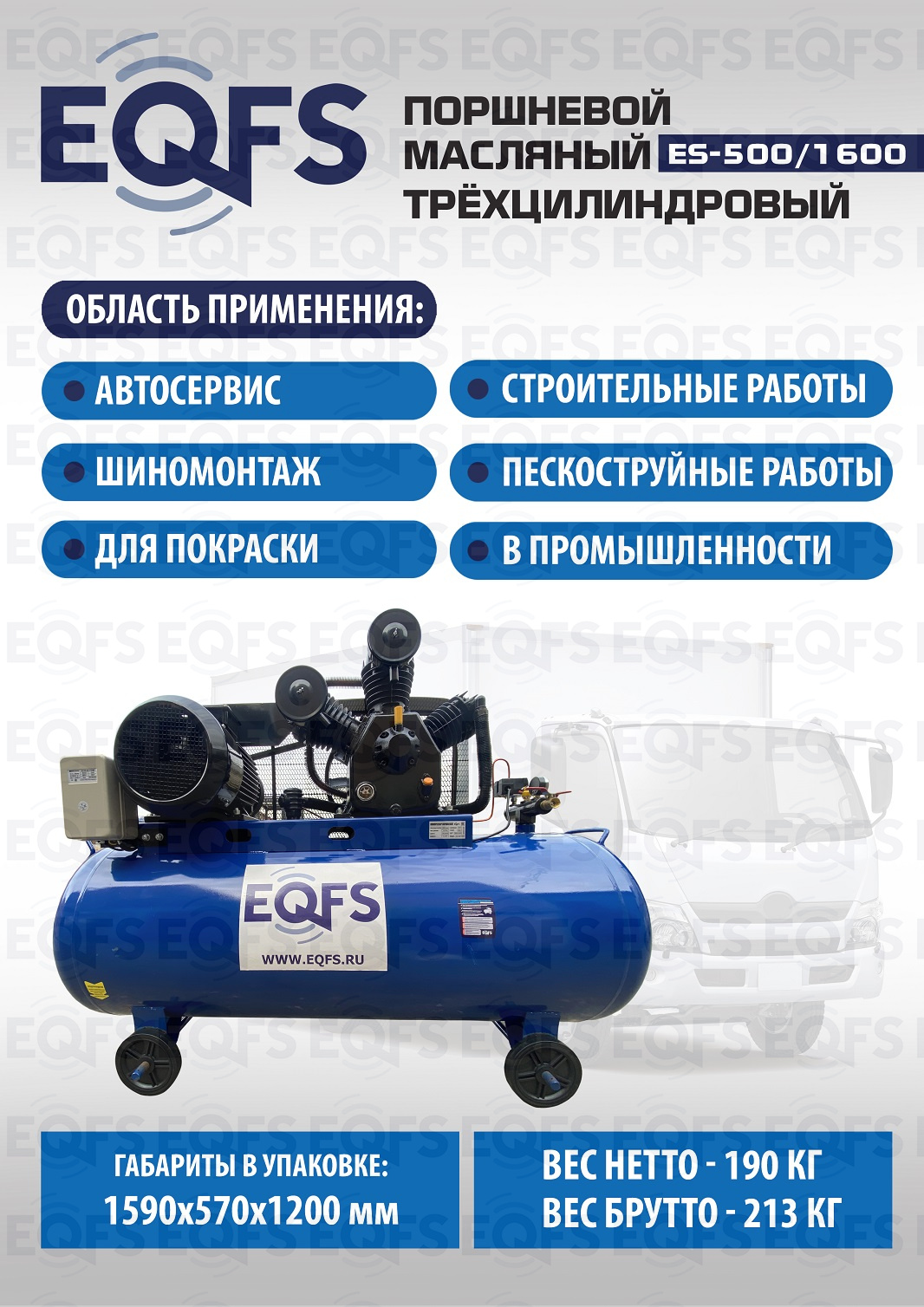 Компрессор воздушный, передвижной, поршневой, масляный, трёхцилиндровый. Быстро достигает нужного давления. Трёхпоршневая головка двигателя уменьшает износ деталей и увеличивает срок службы. Ремённый привод — предохранят мотор от поломки. Идеальное решение для шиномонтажа, автосервиса, строительства, покраски, промышленности. Давление 12,5 Атм. Производительность 1600 л/мин. Мощность 11,2 кВт. Напряжение 380В. Ёмкость ресивера 500 л. Гарантия 12 месяцев.