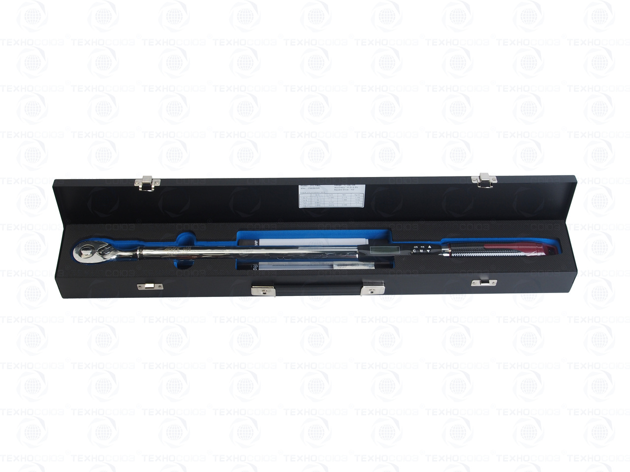 Ключ динамометрический с цифровой индикацией. Храповый механизм на 72 зуба, угол поворота 5'. Посадочный квадрат: 1/2". Диапазон усилий затяжки: 17-340 Н·м. Длина 666 мм. Цифровое считывание значения крутящего момента с функцией запоминания на 30 ячеек памяти. Жидкокристаллический экран с подсветкой. Мигание светодиода и звуковой сигнал. Если крутящий момент достигает 90% от предустановленного значения включается вибрационный сигнал.