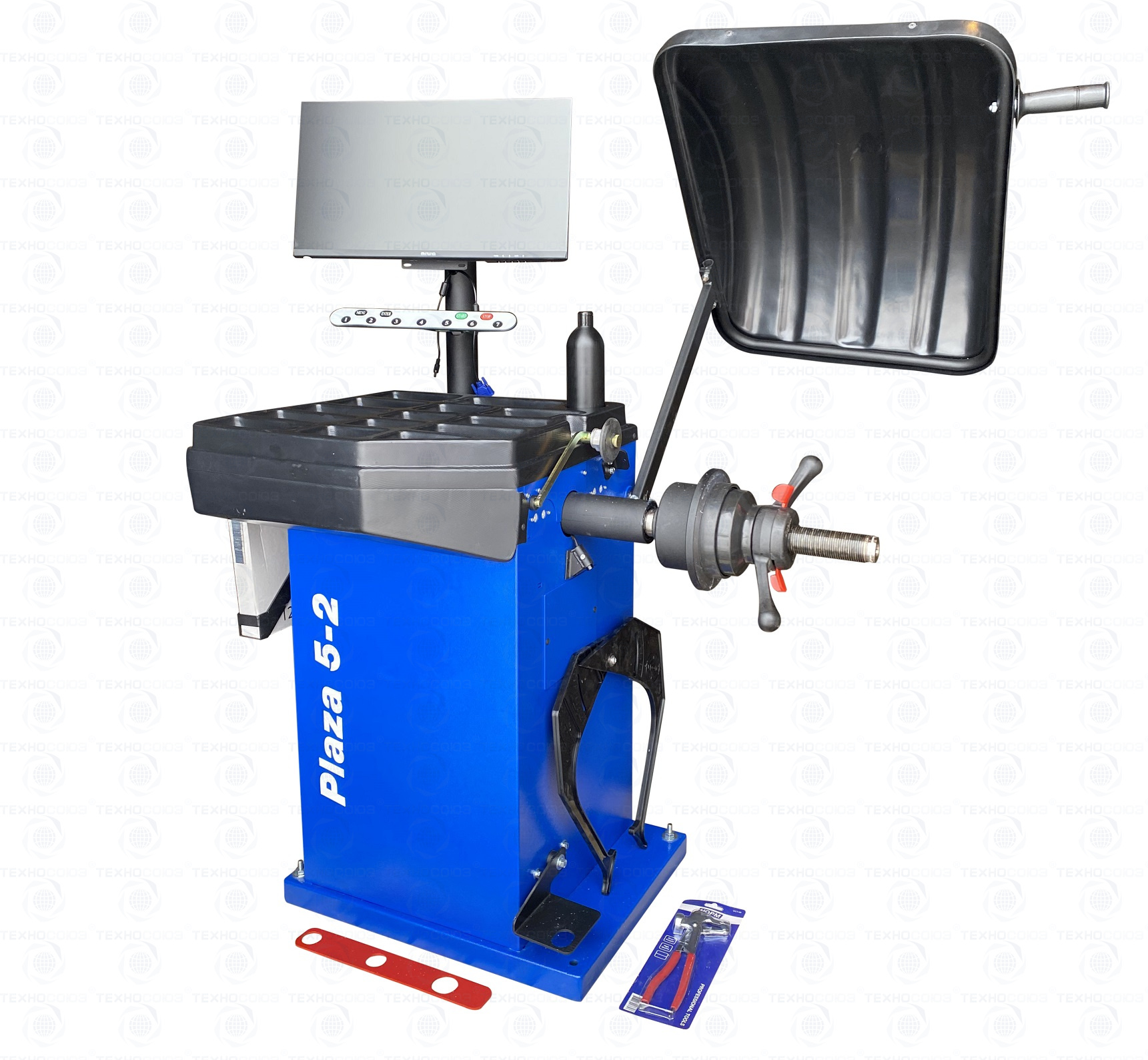Балансировочный станок Plaza 5-2. ПРОИЗВОДСТВО РФ. Автомат. LCD монитор 21 дюйм. Автоматический доводчик и следящий привод. Автоматическое закручивание гайки. Электронная линейка. LED подсветка (4 линзы). Оснащен лазерным указателем положения места установки. Многофункциональная педаль управления для работы без нажатия кнопок. Статистика и учет расхода грузиков. Вал 40 мм шлифованный. Для колёс легковых авто и коммерческого транспорта с диаметром диска с резиной до 980 мм. Размеры диска: ширина 1,5–20” , диаметр диска 9–24”. Вес колеса 65 кг.  Гарантия 2 года.
