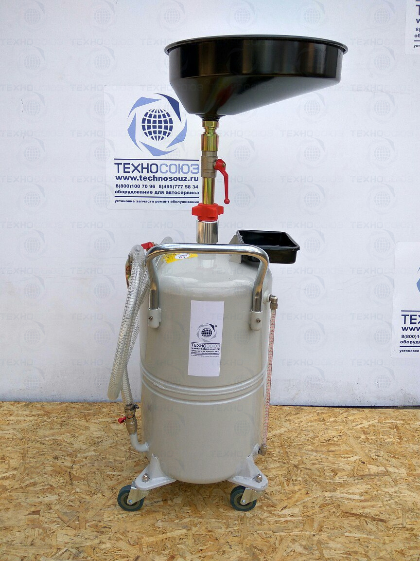 Емкость для слива масла (маслосборник), емкость бака 80 л, с подъемной ванной емкостью 15 л, длина шланга 2м, максимальная высота 1850 мм, давление слива масла 0,5 бар, вес 25кг.