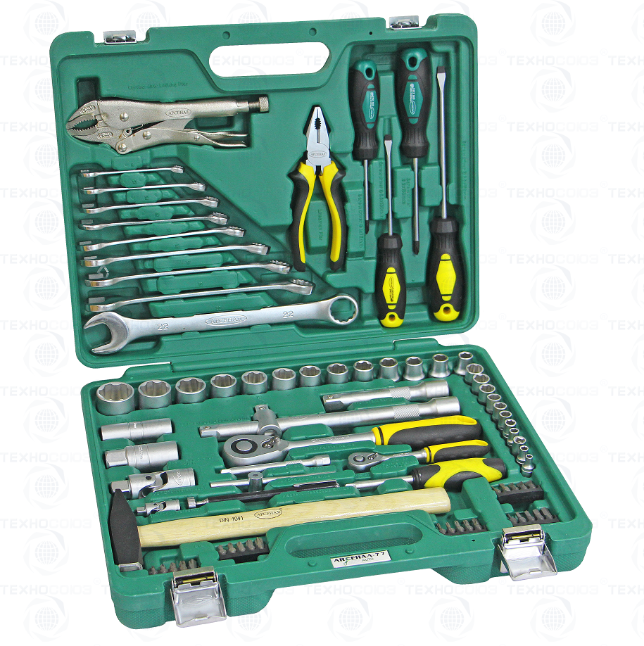 Набор инструментов 77 предметов AUTO Арсенал AA-C1412L77 является серьезным помощником даже для самых трудных задач в области самостоятельного ремонта и обслуживания автомобиля. Грамотный подбор головок, ключей, отверток позволит ремонтировать автомобиль самостоятельно. Сталь, из которой изготовлен инструмент, легирована хромом и ванадием с нанесением никелевого покрытия. Крепкий кейс из ударопрочной пластмассы. Наборы инструментов Арсенал имеют пожизненную гарантию. Инструмент Арсенал - Специально разработан для Российских условий!!!