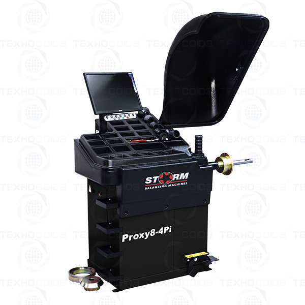 Proxy-8-4pi - суперавтоматический станок виброконтроля и балансировки колес с микропроцессорным управлением и обработкой информации от российской компании, произведен и собран на заводе в России. Станок балансировочный Proxy-8-4pi - прецизионное (высокоточное) устройство, которое применяется для балансировки колес легковых автомобилей, микроавтобусов и легких грузовиков с диаметром диска до 30 дюймов и шириной до 20 дюймов. Обеспечивает измерения статического (при свободном вращении) и динамического (при вращении на высокой скорости) дисбаланса колеса. Кроме того, Proxy-8-4pi осуществляет вычисление масс корректирующих грузов и их положения в двух плоскостях коррекции (на наружной и внутренней сторонах диска колеса) за один цикл измерения. Конструкция рабочей части шпинделя станка позволяет устанавливать любые адаптеры для закрепления колес фирм «СТОРМ» и «HAWEKA» - в том числе мотоадаптеры, фланцевые, кулачковые и цанговые адаптеры. Мы также увеличили ход захвата до 65 мм, усовершенствовав предыдущую версию Proxy 8-2 pi. Обладает повышенной производительностью.