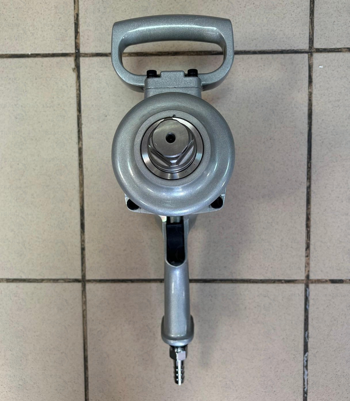 Гайковерт грузовой пневматический. Реверсивный. Ударный. Для слесарных работ с грузовыми автомобилями, автобусами, троллейбусами и спецтехникой. Рекомендуемое применение – слесарные мастерские, автотранспортные предприятия, производственные предприятия, стройплощадки. Максимальное усилие - 2400 Нм. Посадочный размер под головку - квадрат 1”. Максимальный размер резьбы – М38. Вес – 10 кг.