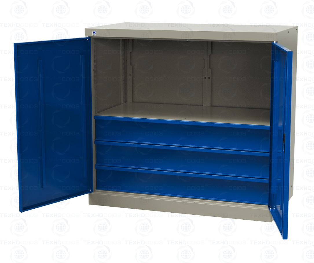 Шкаф инструментальный, металлический предназначен для хранения инструментов, комплектующих и приспособлений в производственных цехах, мастерских, автосервисах, гаражах.  Максимальная нагрузка на шкаф MLST6 – 350 кг. Размеры: 875x930x511 мм. Вес: 54 кг.