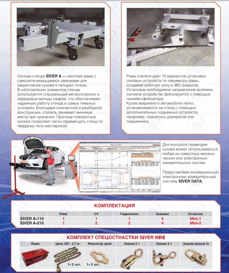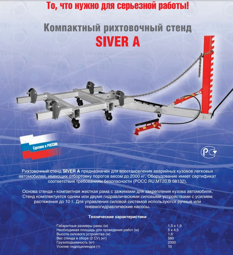 Стапель SIVER A для кузовного ремонта – предназначен для быстрого ремонта легких и средних повреждений автомобиля. SIVER A может использоваться в небольшой кузовной мастерской или в качестве дополнительного рабочего места в больших кузовных цехах.