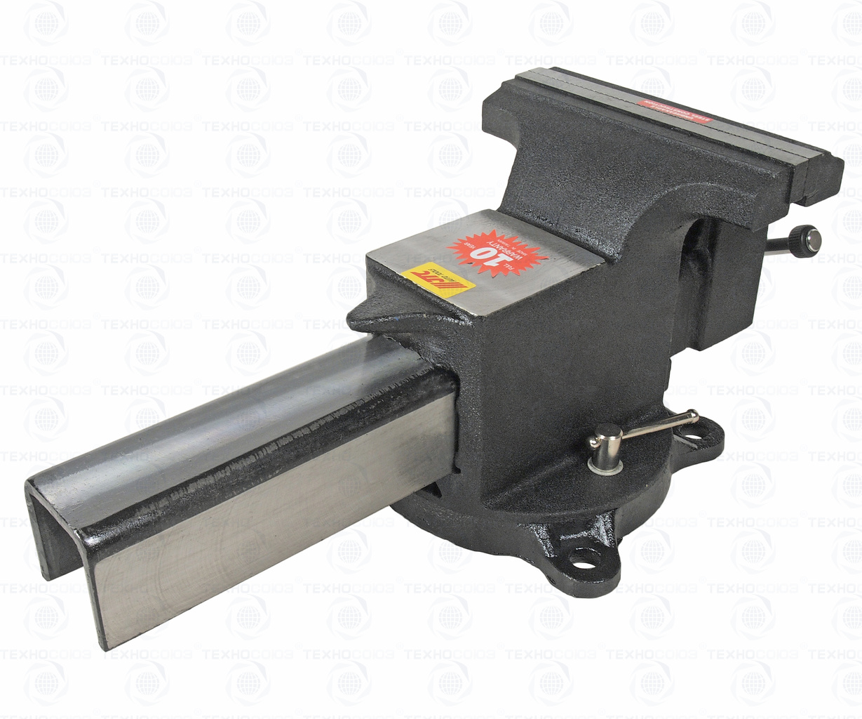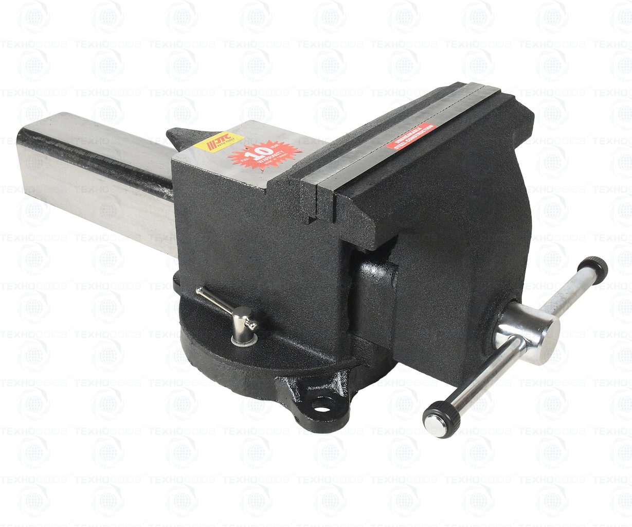 • Специальная конструкция с поворотным основанием позволяет регулировать и фиксировать тиски в нужном направлении.