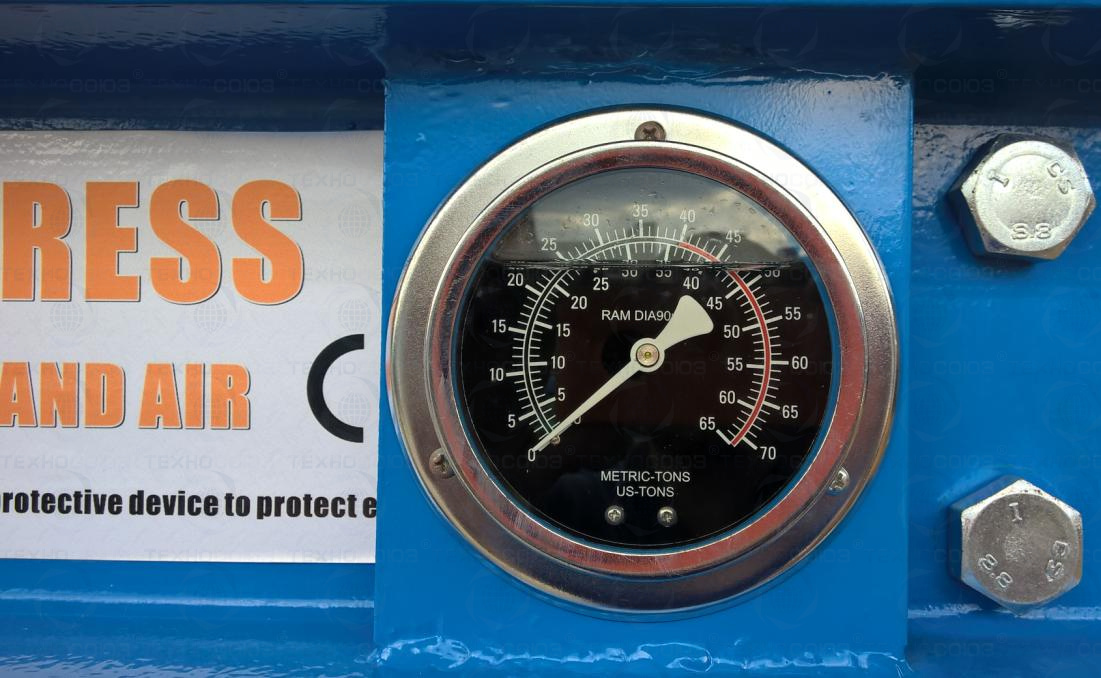 • Пресс укомплектован гидравлическим ручным насосом с максимальным усилием 50т.