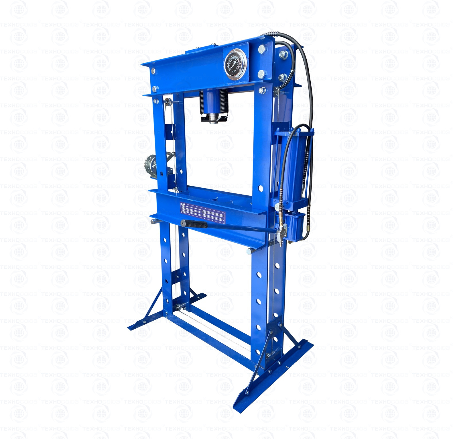 · Пресс укомплектован гидравлическим ручным насосом и пневмогидравлическим с максимальным усилием 50 тонн.