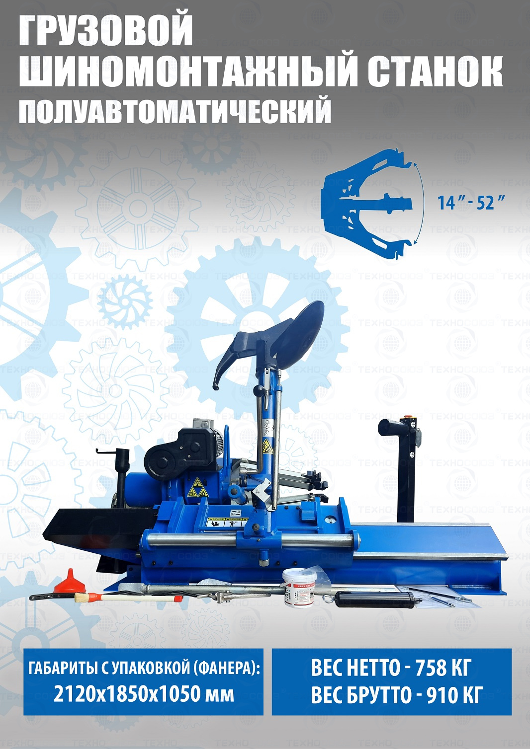 TS-52D Шиномонтажный стенд грузовой c удлинителями 14-52”, 380В