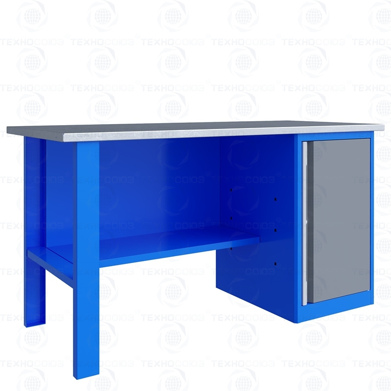 Однотумбовый. Допустимая нагрузка на столешницу 750 кг. Опорные элементы выполнены сварными из холоднокатаной стали. Для выполнения сборочных, ремонтных, слесарных, монтажных и других видов работ на производстве, в сервисных центрах, мастерских, гаражах, а также для обучения технологии в учебных заведениях. Комплектуется полкой-стенкой, расположенной под столешницей для удобного размещения габаритного инструмента и оснастки. Размеры верстака: 855x1596x696 мм. Вес: 65 кг. Поставляется в 4 комплектациях на выбор.